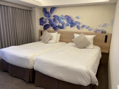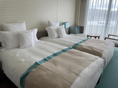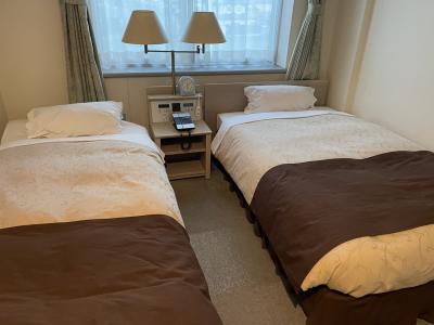 前回は東館に宿泊しましたが、今回は本館のツインルームです。リニューアルされているので、お部屋はとてもきれいです。ベッドはエアウィーヴで寝心地最高でした。