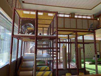 館内にはフクロウやリスザル、カメがいたり、スタンプラリーができたりと子供はとても喜んでいました。食事にはキッズメニューのコーナーもあり、3才までの子供にはチェックイン時にオムツやおしりふきなどもいただける子供連れに優しいホテルです。