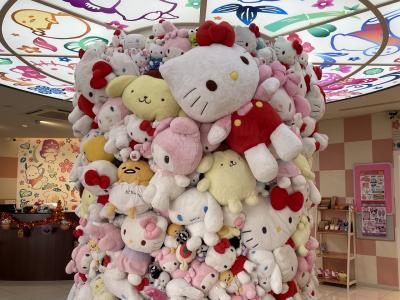 サンリオのキャラクターがいっぱいのホテルです。ロビーの大きなキャラクターの柱が印象的です。