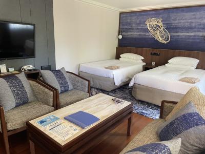 大好きな共立リゾートのホテルです。ビーチタワースタンダードの客室を予約していましたが、ファミリースタンダードの客室にアップグレードしていただけました。スーツケースも広げられるし、小さな子供連れの宿泊でしたので畳のある部屋はありがたかったです。