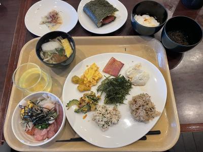 「サーフサイド・カフェ」のおばぁのポーク玉子おにぎりや郷土料理の朝食と、「オアシス」のクラブ潮風ゲスト専用の洋食ビュッフェの両方を食べることができたのも良かったです。