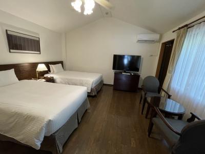 宿泊したのはツインのお部屋。エキストラベッドを入れて3名での宿泊です。古さはありますが、リニューアルされているのか、とても綺麗でした。ベッドの寝心地も良く、ぐっすり休めました
