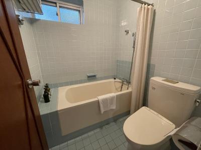 客室は古いけれど広いです。客室の浴槽やジェットバスがザラザラしているのが気になり、軽く掃除をしてしまいました。