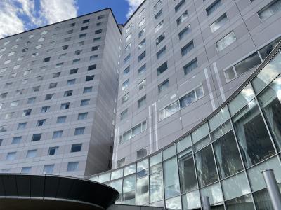 グローバルゲートビルの上層階(31階~36階)に位置するホテルです 。客室は32階のツインルーム、シンプルでスタイリッシュなお部屋です。遮るものが何もない大きな窓からの眺望は素晴らしいものでした。夕方、日没後、深夜、早朝と、時間による景色の変化を楽しめます。夜景は特にキレイで贅沢な時間を過ごすことができました。