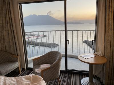 ホテルの部屋にベランダがあり、外に出られるようになっています。前日は暗くなってからの宿泊だったので見られませんでしたが、朝ベランダから見た桜島には感動しました。早めにチェックインすることをおすすめします。建物や設備など、少し年季が入ったホテルでしたが、きれいに清掃されています。夕飯はホテルの日本料理のお店で鰻をいただきました。個室を用意していただけたので、子供連れでもゆっくり食事ができました。ホテルなので接客は完璧。ホテル内なのにリーズナブルでおいしい料理を楽しめました。