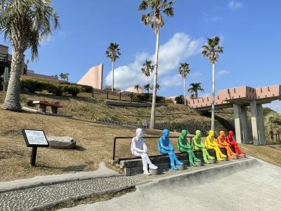 小さな子供も楽しめそうな観光スポットだと思い訪れました。『サンメッセ日南』はモアイ像で有名な広い公園です。入場料は大人1000円(値上がりしたようですね)。モアイ像を見るためだけには正直、高いな~と思いました。園内は傾斜がある坂道が多く、子供を抱っこして、歩いて行くのは大変です。そこで30分1000円の有料のカートで移動しました。ガタガタするのでスリルもあり、子供たちも喜んでいました。30分はあっという間で追加料金は30分毎に500円でした。丘の上からは7体のモアイ像と日南海岸の海が見事に調和された眺望を楽しめます。2歳の孫娘は空中ブランコがお気に入りでした。ブランコからの景色も絶景です。
