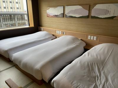 大人4人と幼児2人で宿泊しました。トリプルルームにエキストラベッドを入れての利用でしたが、それでも広々と使えて快適でした。大浴場は5Fと7Fにあり、日替わりで男女入れ替え制なので、当日と翌朝、違うお風呂に入れます。露天風呂はそれぞれ5つあり、2日間で内湯2種類、露天風呂10種類を楽しむことができます。ホテルが高台に建っているので、露天風呂からの眺めは素晴らしいです。