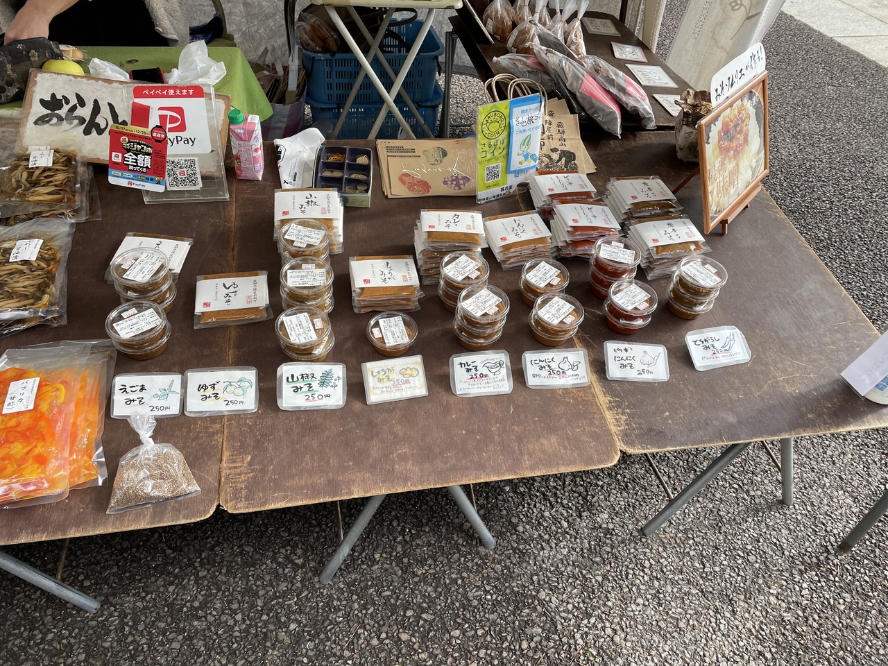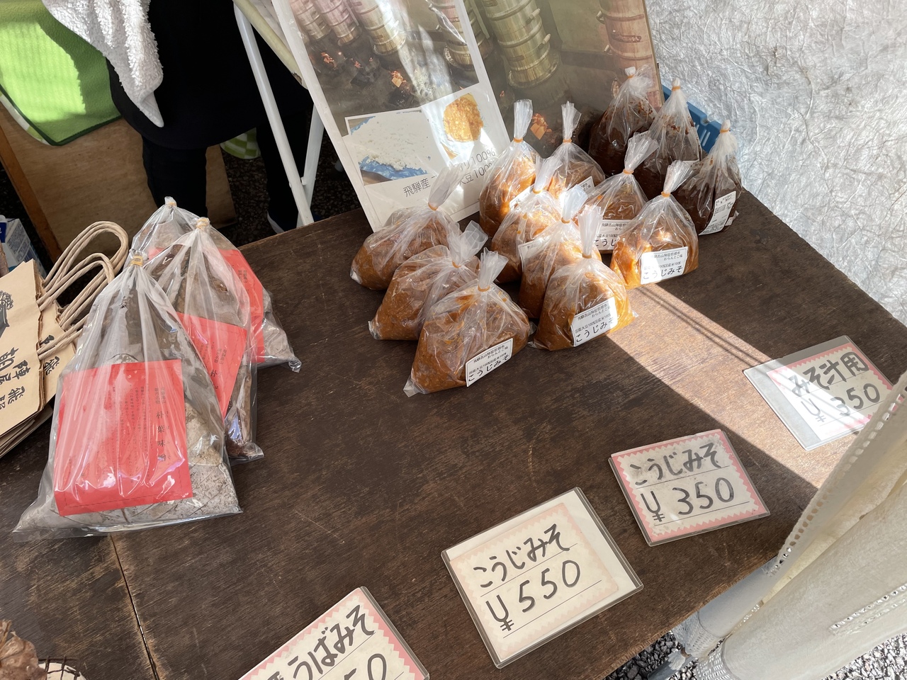 高山の朝市は陣屋前広場と宮川沿いの二か所にあります。陣屋前朝市は宮川朝市より店舗の数も少ないアットホームな朝市です。ここに来るといつもお味噌を買いますが、美味しいおみそ汁が作れます。3つ買ったら安くしてもらえました。他のお店で朴葉の葉が100円で売っていたので購入したのですが、穴が開いた朴葉の葉をサービスでたくさんいただきました。とうがらしを買ったら、袋いっぱいの辛い唐辛子もいただけました。サービス精神旺盛でびっくりです。PayPayが使える店舗もあり便利です。