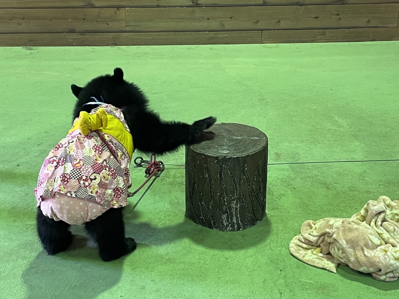 0歳と2歳の子供と一緒に訪れました。入場料は大人1,100円。朝の8時開園、年中無休です。ツキノワグマなど、100頭余りのクマさんがいるとありましたが、ツキノワグマしかいなかったような(笑)。クマちゃんのおやつはビスケット100円、ドライフルーツ200円。私たちはりんごの大500円を購入。エサが欲しくて「こっちこっち」とアピールする姿が可愛くて癒されました。りんごはけっこうな量がありましたが、すぐになくなってしまい、追加で自販機のビスケットを買いました。クマさんはりんごの方がお気に入りのようでした。こぐまと一緒に写真を撮るイベントがあるようでしたが、当日はやっておらず、こぐまの公開のみでした。以前はあったショーも今はやっていないようでした。