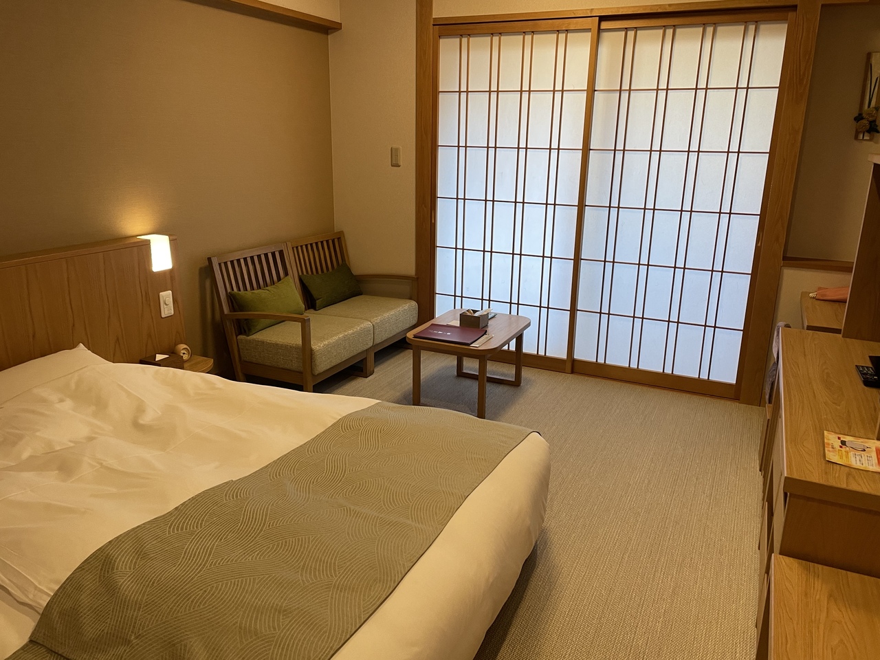 2022年6月にできたばかりの新しいお宿です。館内も、お部屋もお風呂もピカピカなので気持ちよく過ごせます。夜鳴きそば、湯上りのアイスキャンディー、乳酸菌飲料、お茶バイキング、お凌ぎのお団子など無料のサービス満載でとっても楽しめました。館内は畳敷きなので、1歳になったばかりの子供が転んでも安心でした。食事は夜は会席料理、朝はバイキングです。会席料理は見た目も器も美しく、選べる料理もあり楽しめます。朝のバイキングは品数も多く、京都のおばんざいなど郷土料理もありました。1泊では食べきれませんね。貸切風呂は5種類あり、空いていれば、いつでも入れます。他の共立リゾートの貸切風呂より大きかった気がします。記録的な大雪の降った翌日の宿泊だったので、貸切風呂は寒くて断念。それだけが残念です。京都は近いので、暖かくなったら再訪したいです。