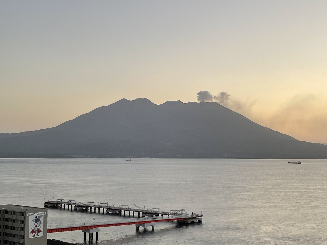 ホテルの部屋にベランダがあり、外に出られるようになっています。前日は暗くなってからの宿泊だったので見られませんでしたが、朝ベランダから見た桜島には感動しました。早めにチェックインすることをおすすめします。建物や設備など、少し年季が入ったホテルでしたが、きれいに清掃されています。夕飯はホテルの日本料理のお店で鰻をいただきました。個室を用意していただけたので、子供連れでもゆっくり食事ができました。ホテルなので接客は完璧。ホテル内なのにリーズナブルでおいしい料理を楽しめました。