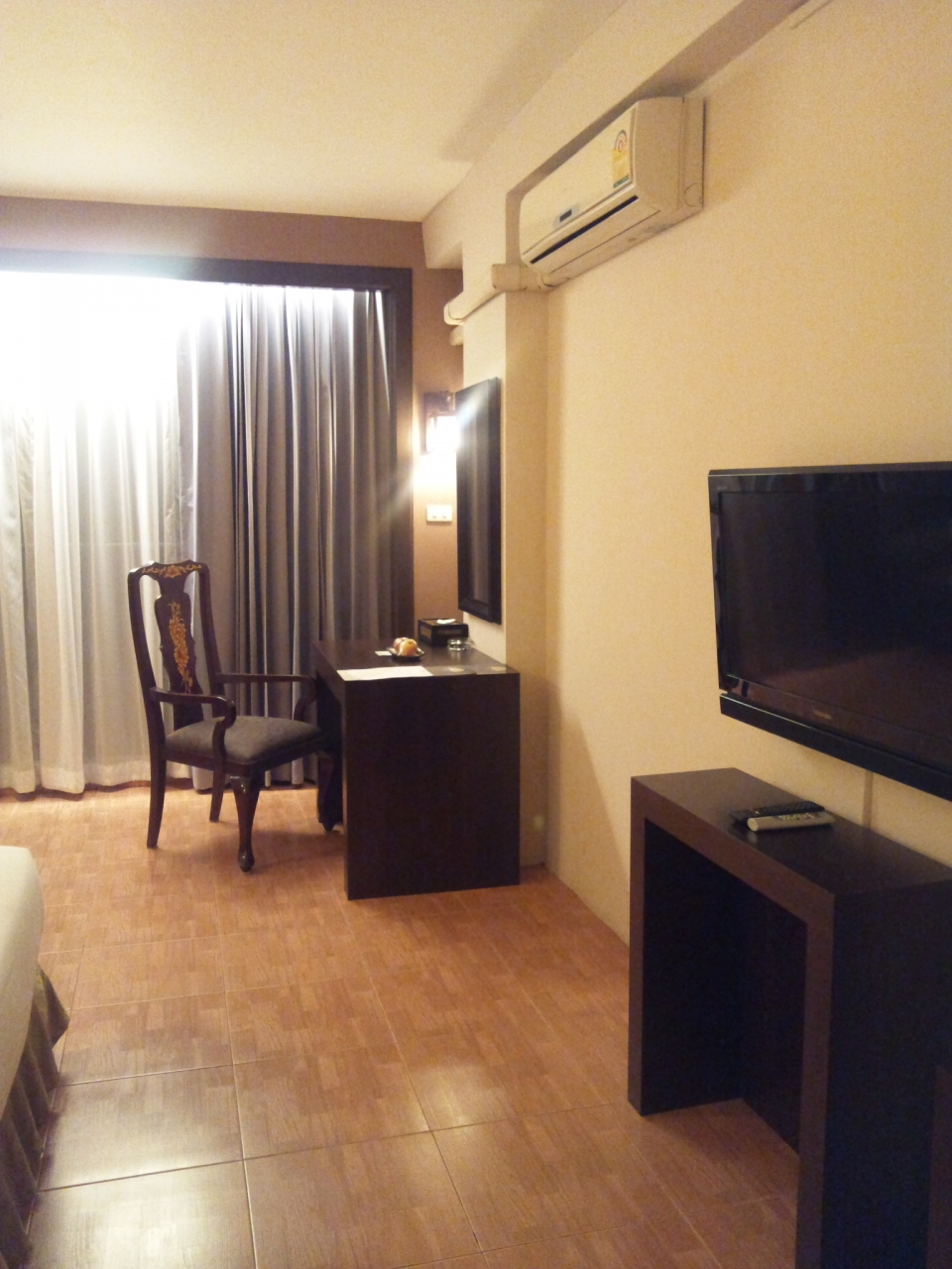 部屋の広さは、二人だと少し狭いかな。