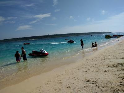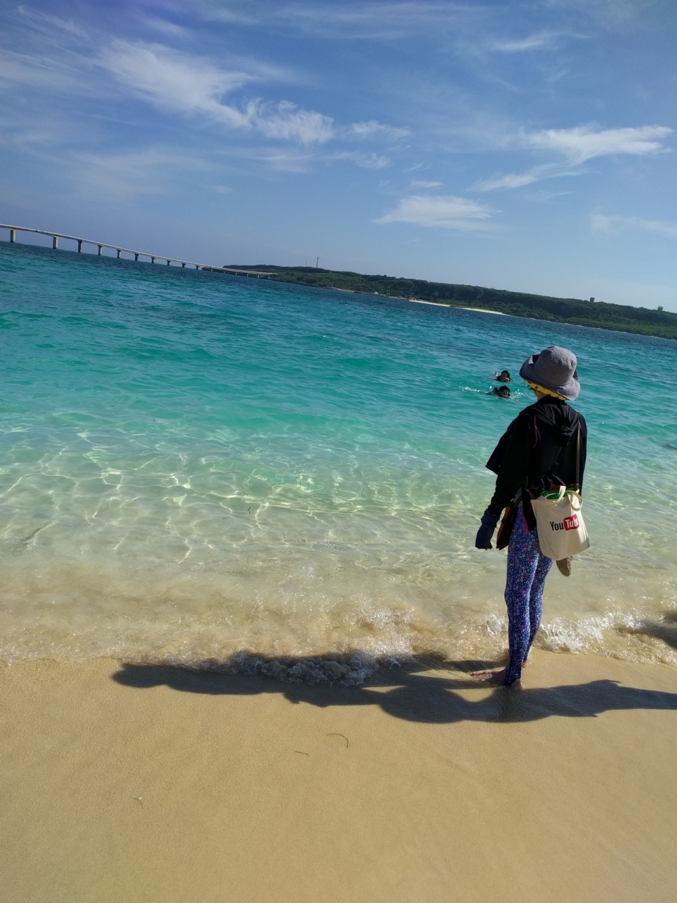 泳ぐ為に行ったけどおばさんの私は海に入るをためらった。若い人ばかり。アクティビティが盛んで色んな乗り物に乗って遊んでいた。水は透明で青く向こうには橋も見える。眺めているだけで気持ち良かったけど日陰が無いので真夏の炎天下はパラソルがないと大変な事になりそう。