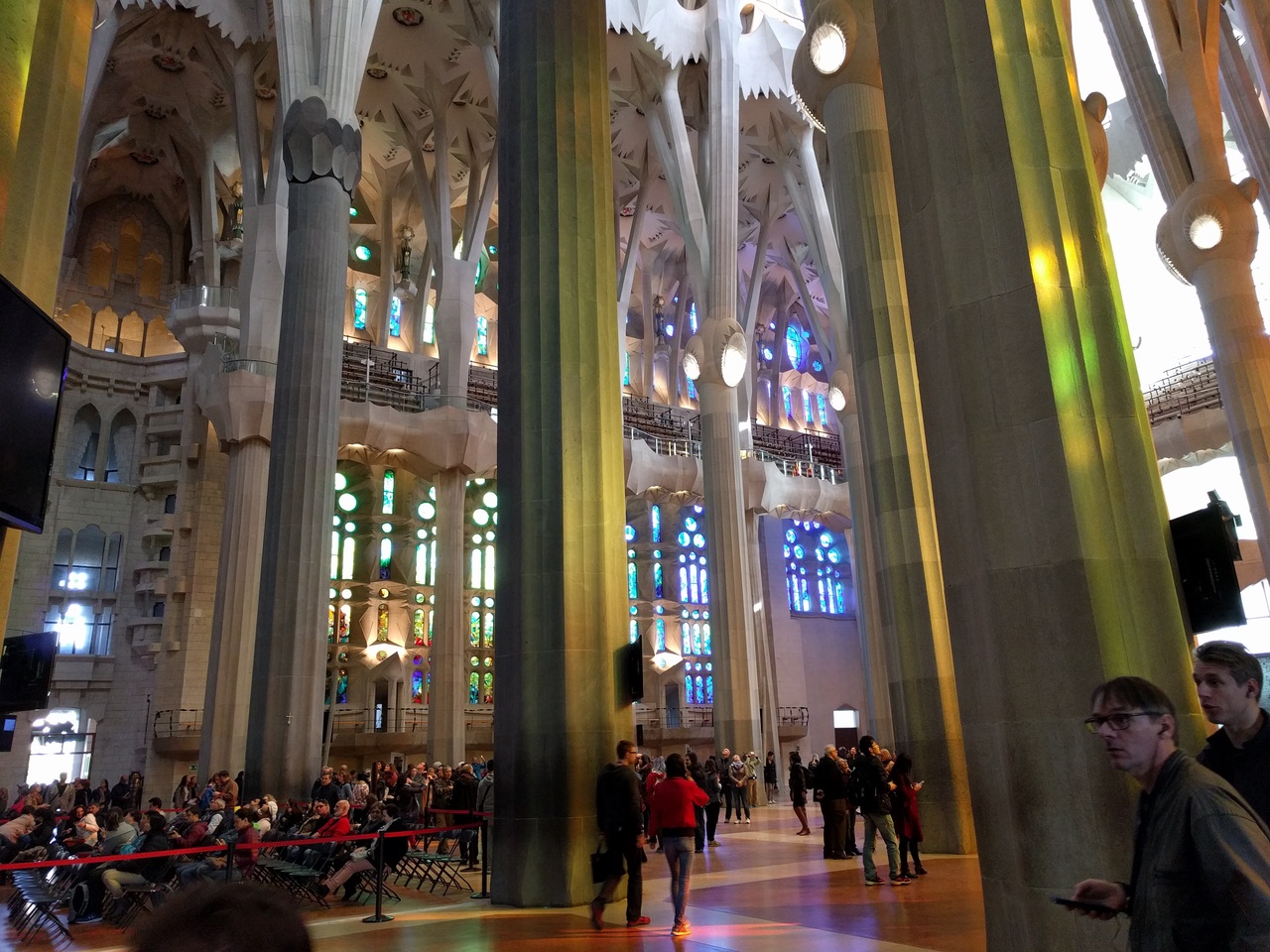 ツアーで連れていって貰った。だから待たずに入場出来たしエレベーターで上る事も出来た。人が多かった。エレベーターで上がったけど窓から外の景色を見るだけで感動は無かった。朝日が差し込むステンドグラスは綺麗だった。