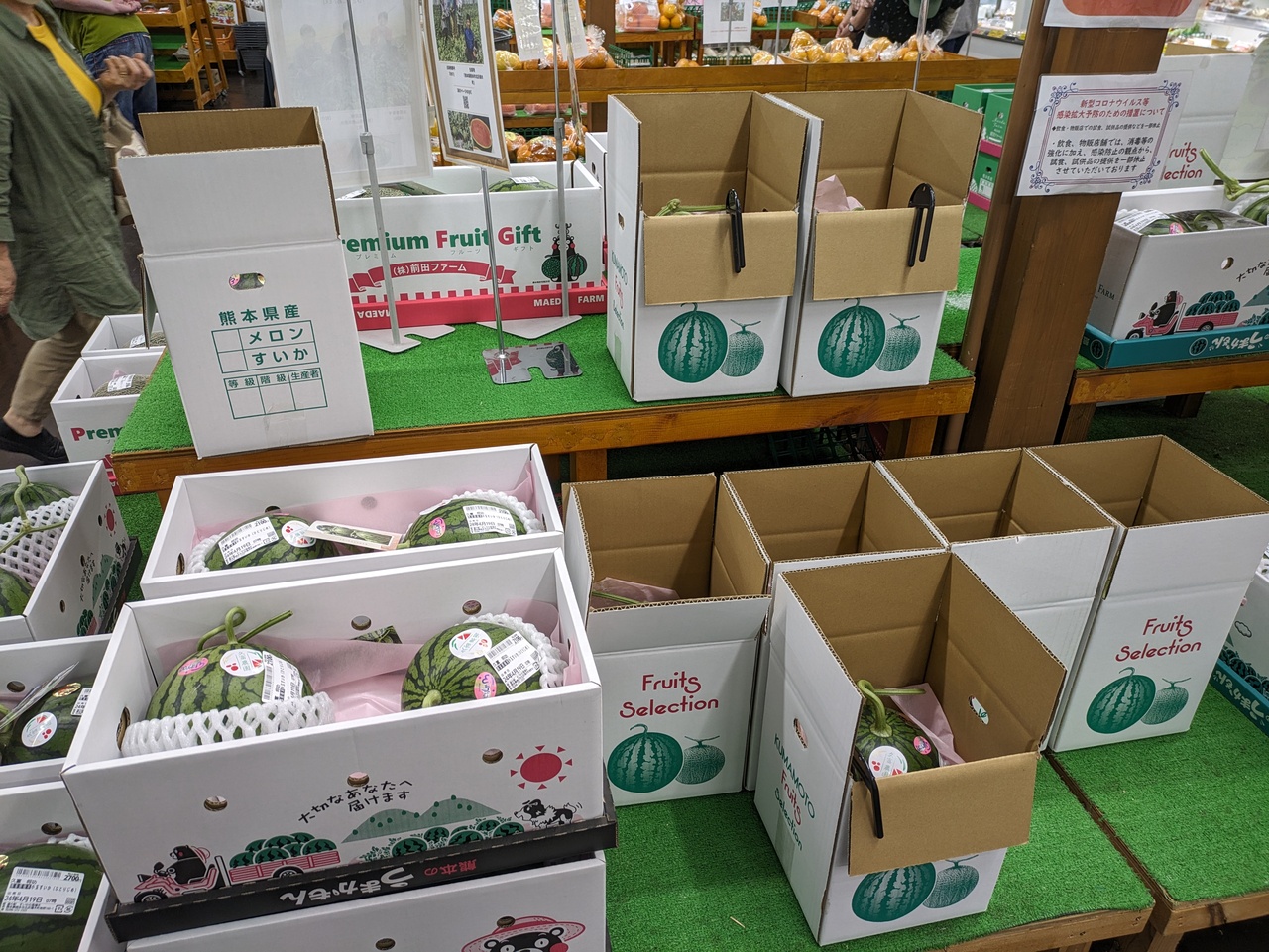スイカの名産地と言うとこで行きました。確かにスイカは沢山並んでいました。でもそれ程安くは無かったです。贈答用かな。家で食べる様な物も置いて欲しいと思いました。他の野菜とかも余り無く結局おにぎりだけ買いました。こじんまりとした道の駅です。