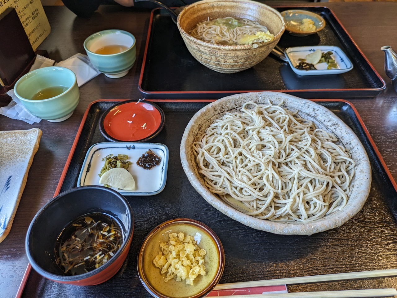 明神池に行った帰りに寄りました。人気店らしいけどオープンと同時に入ったので直ぐに食べれました。そば打ちしてる姿を外から見てたので食べる前からちょっとテンション上がりました。ざる蕎麦は1000円。蕎麦本来の味がしました。