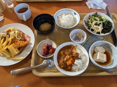 部屋の窓から根子岳と高岳が見える。春だったので桜も綺麗だった。食事は朝夕バイキング。牛肉や刺し身、焼き魚も有って大満足。自分で作るソフトクリームも美味しかった。ただ一つだけ不満なのは壁が薄いのか隣の部屋の話声が聞こえて来たこと。