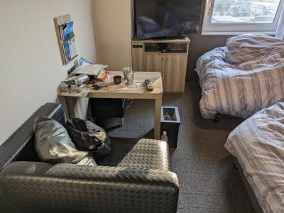 駐車場が狭く空きが無かったので隣の有料に停めた。代金はホテル持ち。共同浴槽はこじんまりとしていたが植木も有ってちょっとした温泉気分を味わえる。駅前で出張のサラリーマンが多く館内は静かで良い。ラウンジに無料のコーヒーやお茶が有るのは嬉しい。しかも部屋まで持って行ける。