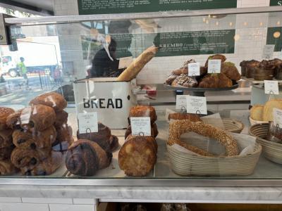 お目当てのクロワッサンサンドを手に入れました。チーズとベーコン、たっぷ...
