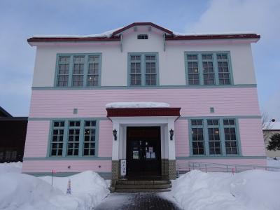 北見と言えばハッカが有名で、無料と言うこともあって行ってみました。外観がかわいらしいピンクの建物。