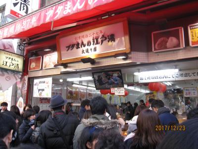 東門から入ってすぐにある豚まん屋さんです。お店のことは全然知らなかったのですが、ものすごい行列ができていてひと目で人気店なんだなとわかりました。
