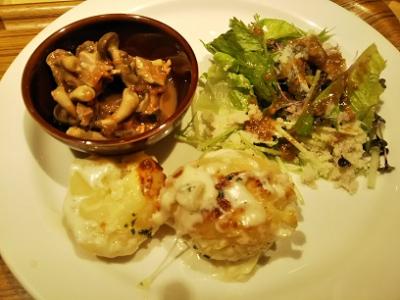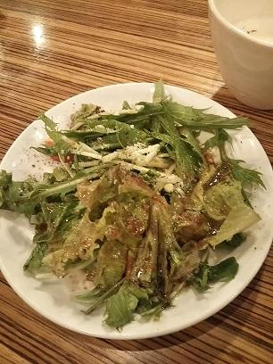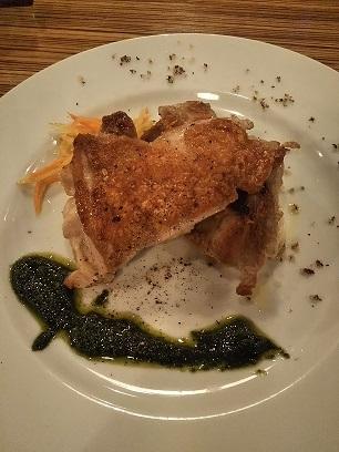 頼んだ鶏もも肉のソテーのランチは、まず量が多い!男性でも十分満足できるようなボリューム。付け合わせの野菜はピパーツか何かのドレッシング、ソースはバジル。ポテトもおいしく、ビストロならではの味付けを堪能できました(^^)