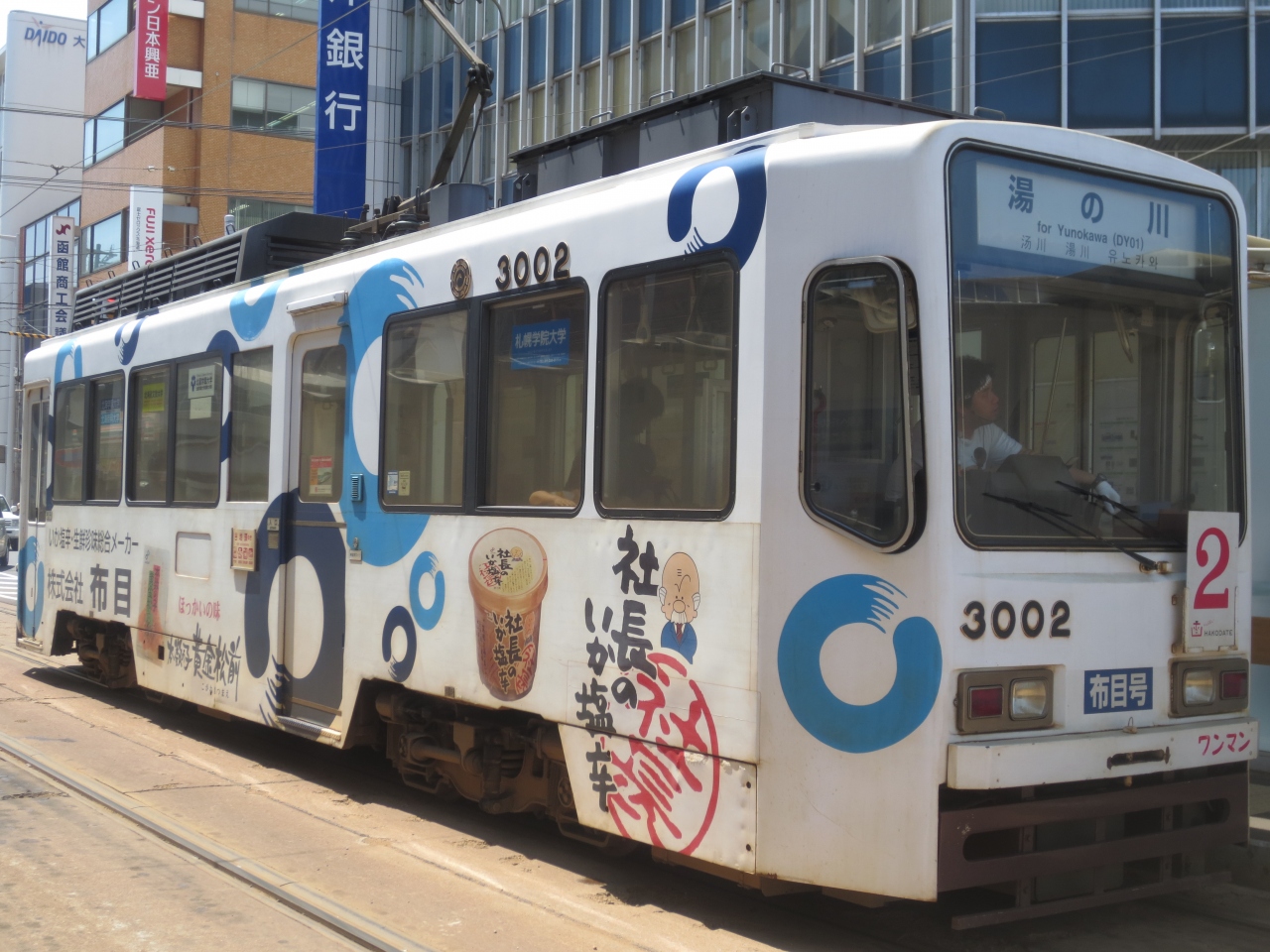 五稜郭を過ぎたあたりからは空き始めるので、ようやく街並みを車窓から楽しめます。湯の川まで行くのはバスに乗って海岸線を行くのもいいですが、路面電車でのんびり行くのもいいものだなあと思います。