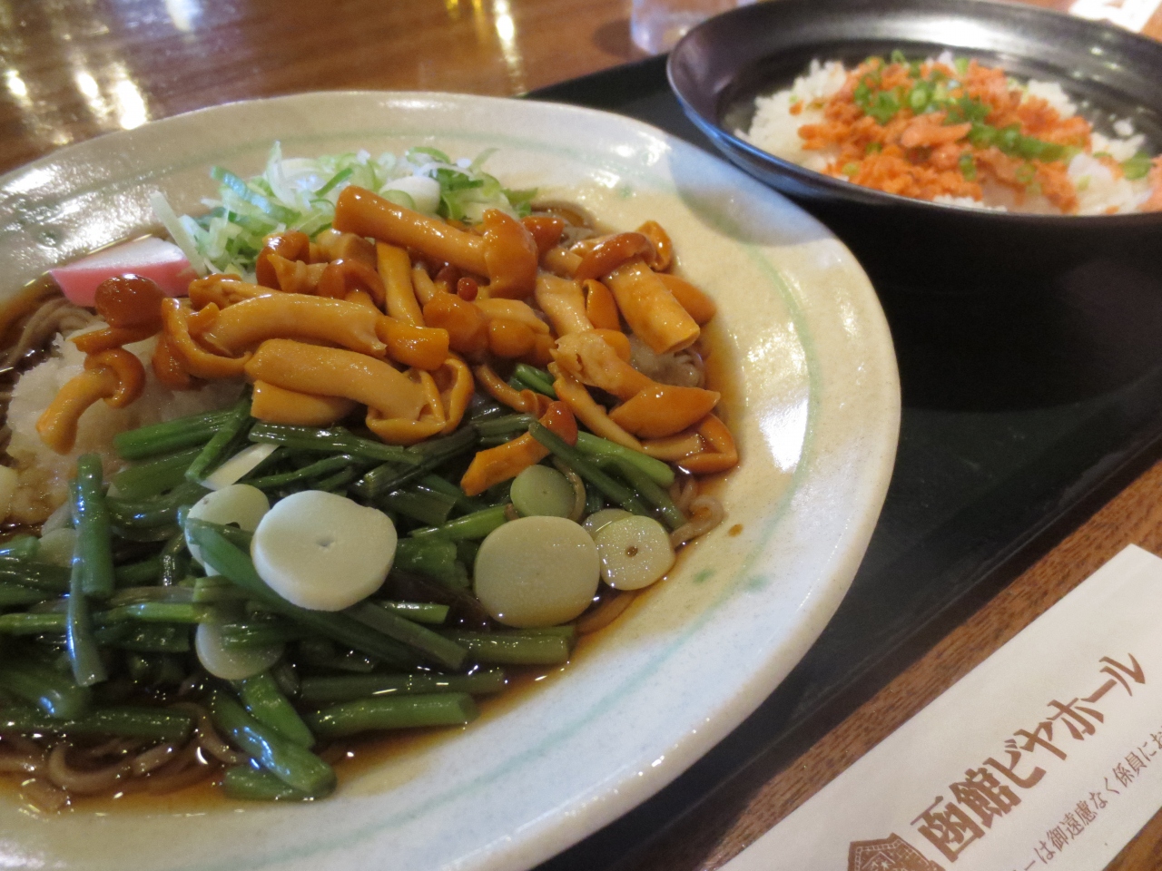 いつ行っても混んでいるお店です。トーフそばマーボー風とかタコス風など、一風変わったメニューもあり、何度か来たことのある夫は「ここは攻めてる店だよ(創作系に熱心の意)」と言っていました。今回初めての訪問の私は、守りの姿勢で(笑)野菜そばの中を頼んでみました。