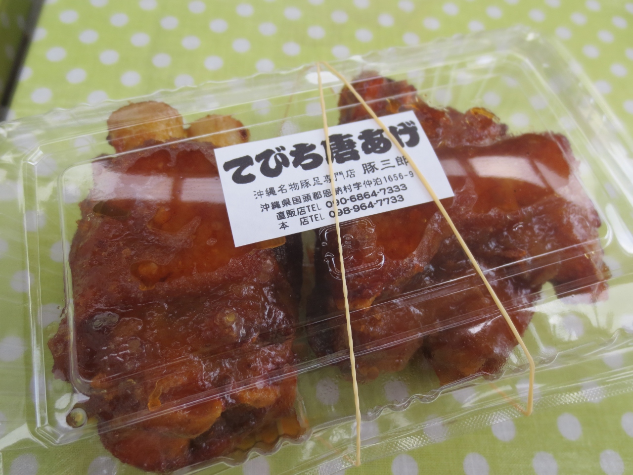 てびち(豚足)から揚げなるものも売っており、こちらは結構脂がすごくて最後まで食べきれませんでした。若い方や強靭な胃腸の持ち主ならいけるかも?