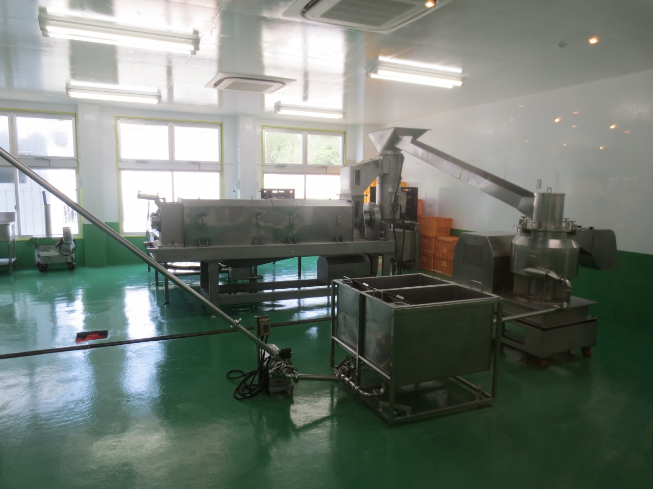 中に入ると右手におみやげコーナー、左手に食事処、奥にはガラス越しに工場がありました。シーズンも終わりのせいかなのか、それともオープンしたばかりだからなのか、理由はわかりませんが工場は稼働してませんでした。