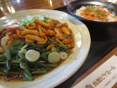 野菜はチンゲン菜でしょうか?でもちょっと見た目が違うので沖縄の島野菜かもしれません。野菜自体はあっさりなのですが、しっかりと油で炒めてあって香りがすご~く良かったです。
