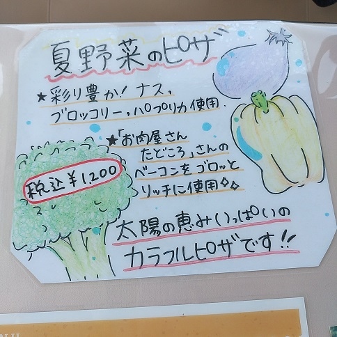 4回目の訪問はランチで。いつも左側のジェラート専門の方にお邪魔していましたが、右側のランチ専門の方へ。夏野菜ピザがおいしかったです。