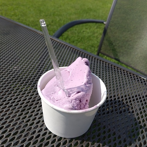 食後は左側のジェラートへ。ブルーベリーミルクを購入。
