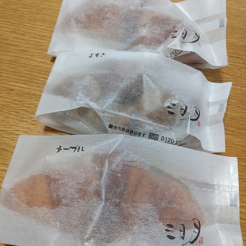 お土産屋さんの集まる場所にお店ができたせいなのか、移動制限のない夏になったからなのか、そこはわかりませんが、ほとんど売り切れてしまってメープルとよもぎしか残っていなかった(´Д⊂ヽ
