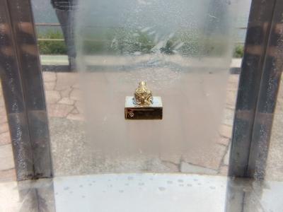 江戸時代に志賀島で見つかったという漢委奴国王印=金印のレプリカがあり、周りには願掛けの小銭がたくさんありました。