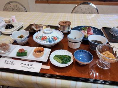 朝食は地場のメニューがズラっと並んで、鯛めしだけでも松山風と宇和島風がありました。