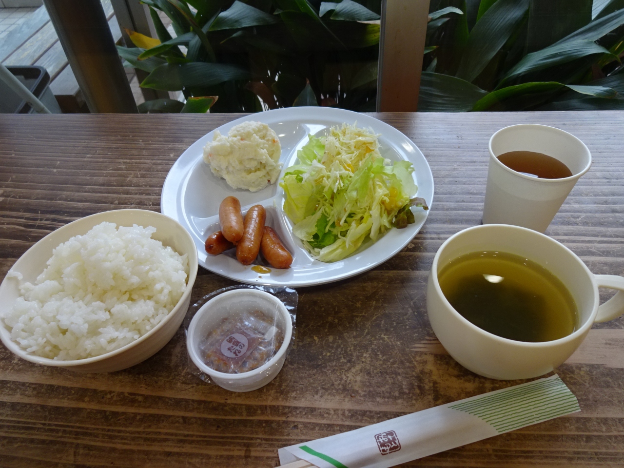 翌朝は朝食のサービスがありました。ご飯、パンにウインナー、生野菜サラダ、ポテトサラダがありました。おかずのジャンルは少ない印象がありました。- 旅行時期