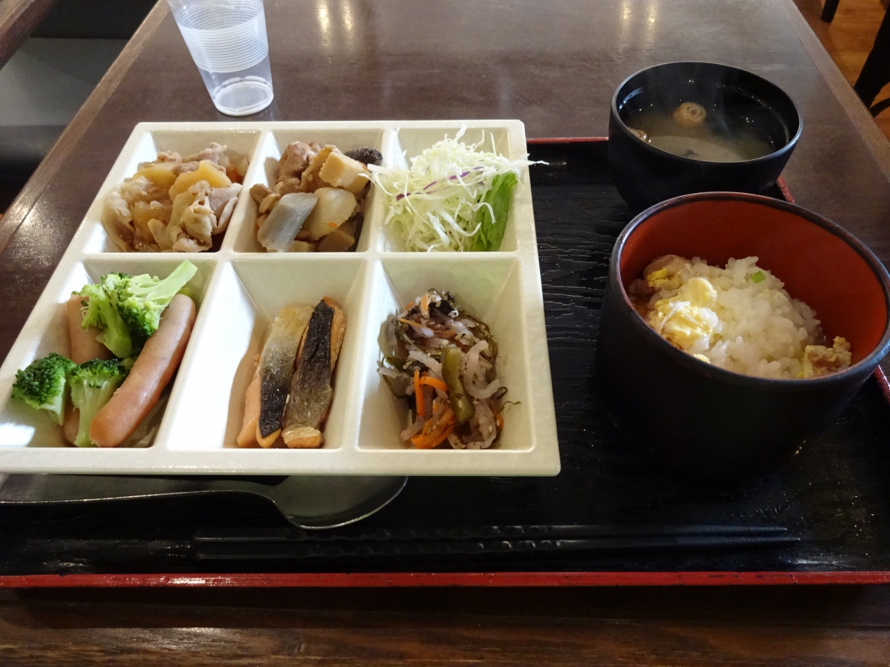 翌朝は、2階ロビーで朝食サービスがあります。地元の食材や調味料にこだわったメニューでした。