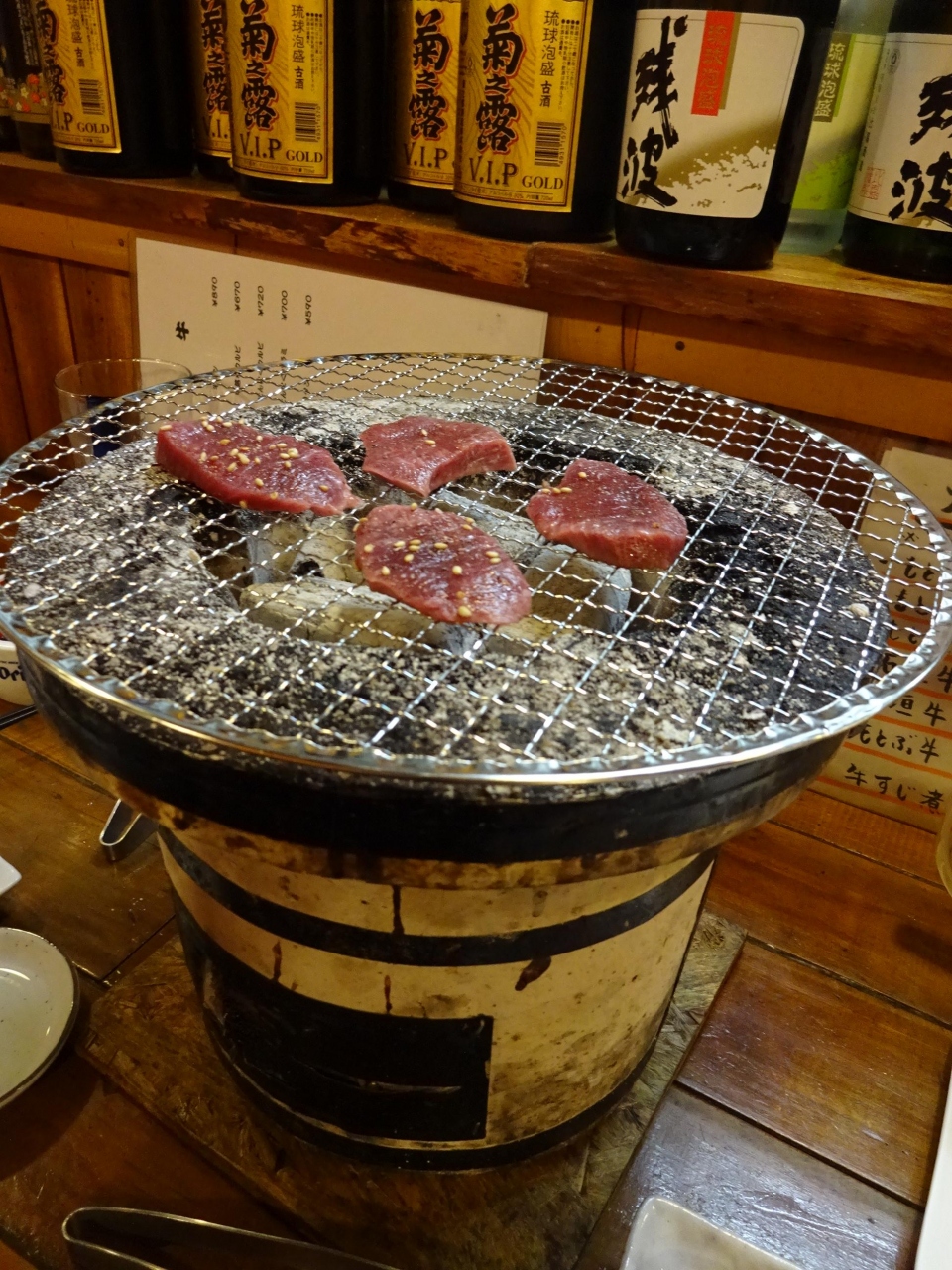 メニューには、沖縄らしくあぐー豚もありました。ほかにもホルモン3種盛り、牛タンなど一般的な焼肉店のラインナップでした。焼肉以外にも牛すじ煮込みといった一品料理もおいしかったです。