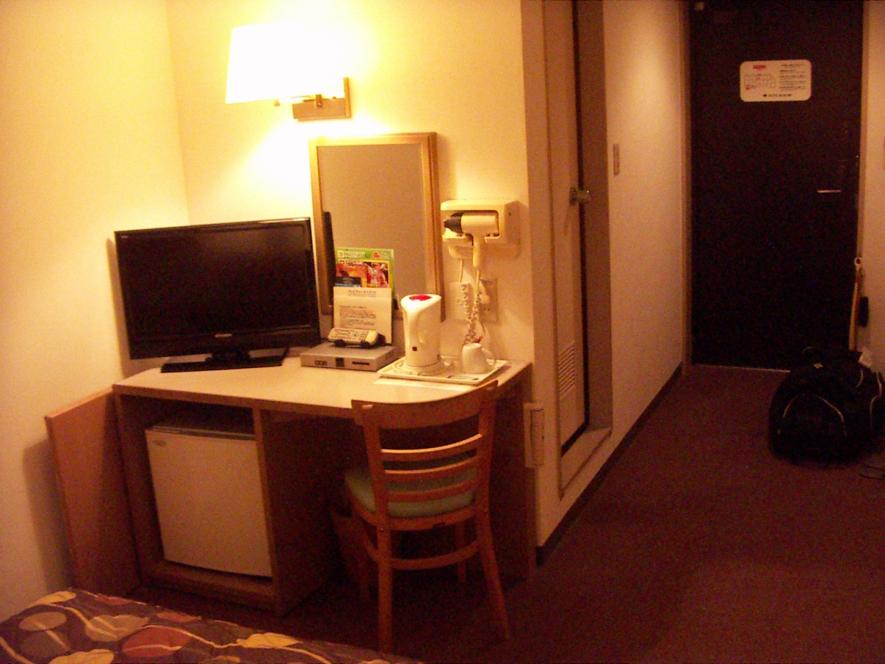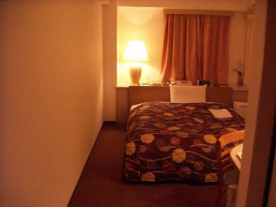 部屋はごく一般的なビジネスホテルのシングルルームで、特に狭くは感じませんでした。ベッドの幅も十分でした。