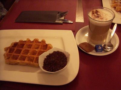 ガイドブックに載っている有名なワッフルのお店。1階ではお土産にピッタリなクッキーなどのお菓子類を買うことが出来ます。ワッフルを食べるカフェブースは2階になります。