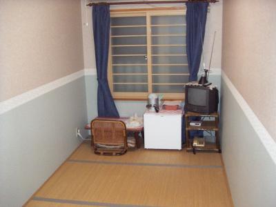 部屋は4畳ほどの和室でした。バス・トイレは共用でした。お風呂は大浴場のように大きくはなく、洗い場が4つほどの小さな浴室でした。