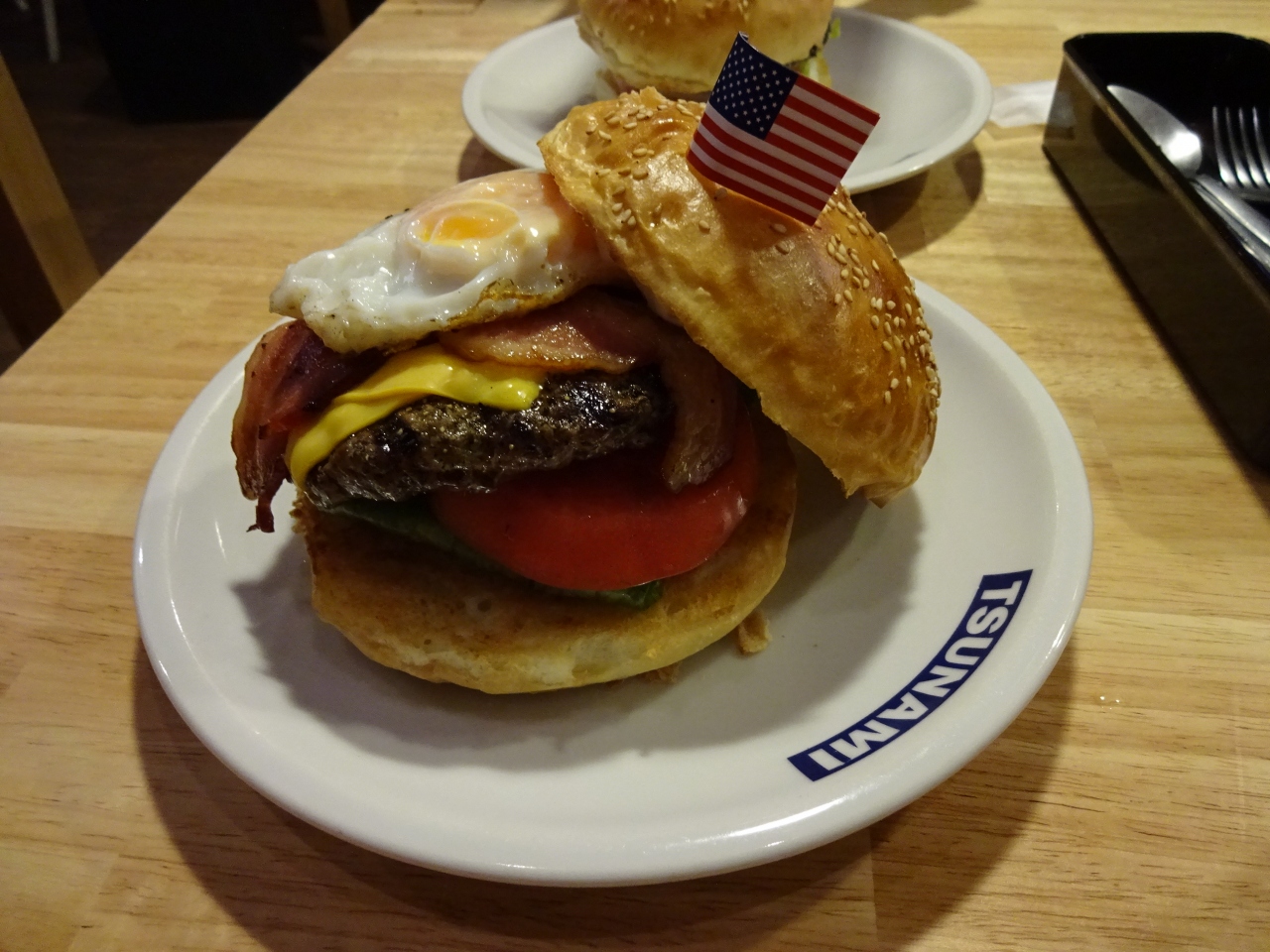 頼んだのは、ジョージワシントンバーガー。注文を受けてからハンバーグを焼くそうなので、提供まで20分近く待ちました。