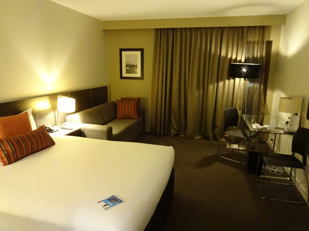 シドニー空港から有料シャトルバスに乗って10分弱にあるホテルです。鉄道の最寄駅はXXXX駅で、ホテルまでは徒歩15分ほどです。
