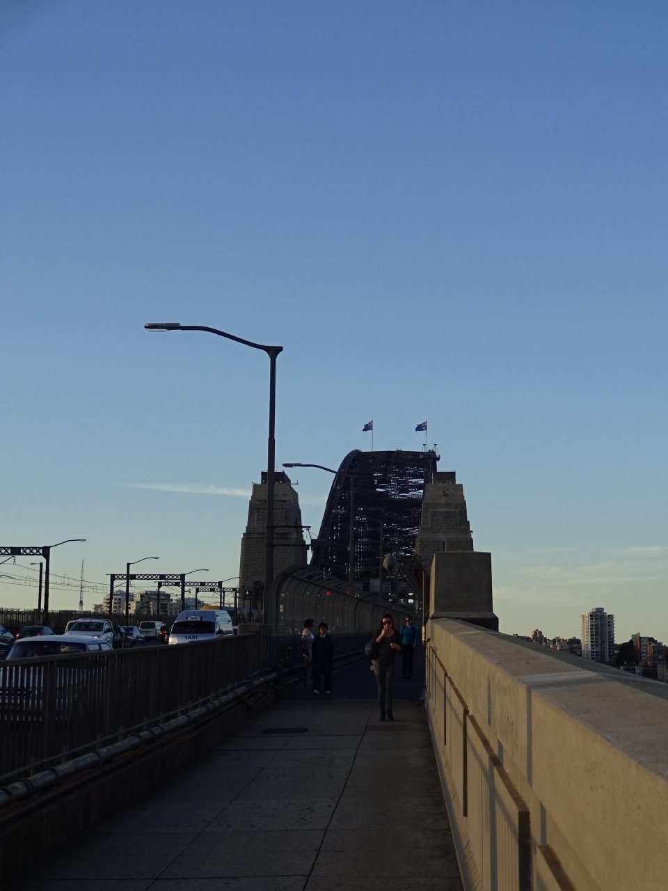 シドニー湾を南北に渡す橋です。自動車のほかに鉄道、さらに歩道も通っています。そのため、歩いて橋を渡ることができます。