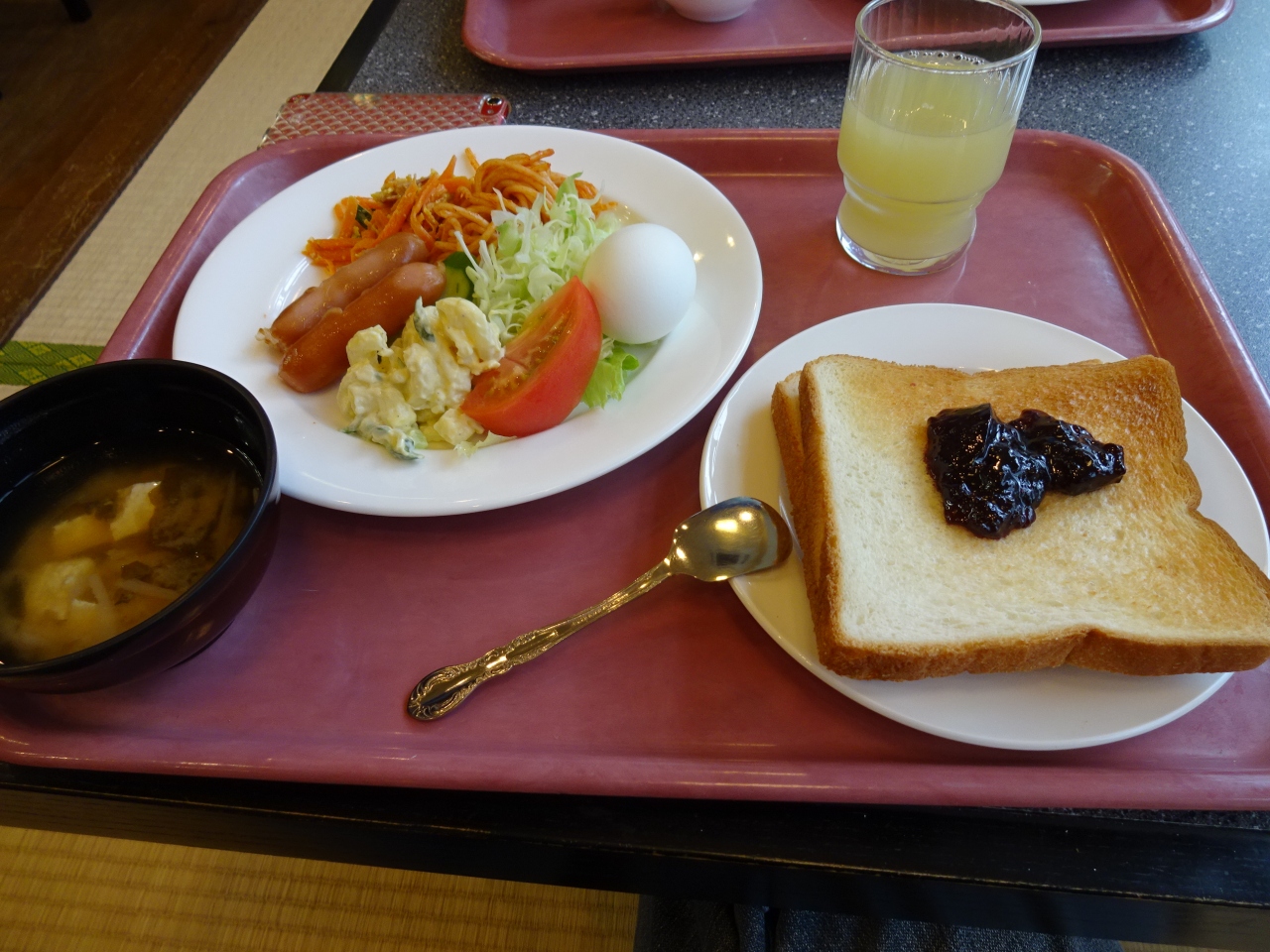 翌日は1階の居酒屋スペースで朝食サービスがありました。パンとおかずが乗ったプレート、コーヒーにジュースがありました。- 旅行時期
