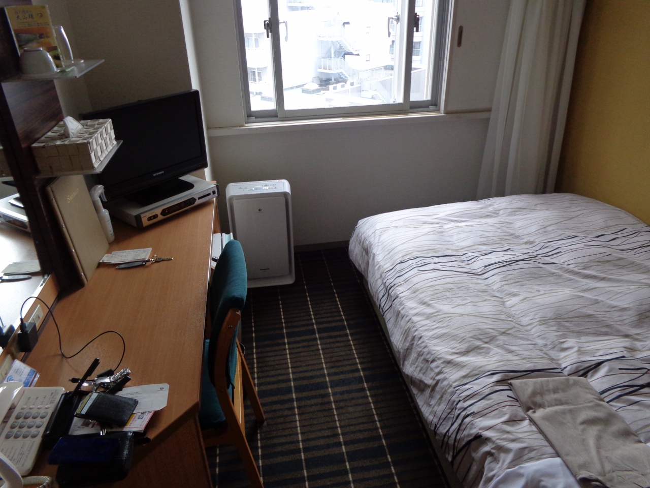 客室はシングルルームで、寝るだけと考えれば十分な広さでした。ただ、長期滞在される方の場合、大きめのスーツケースを広げるスペースはあまりありません。短期滞在向けかと思います。