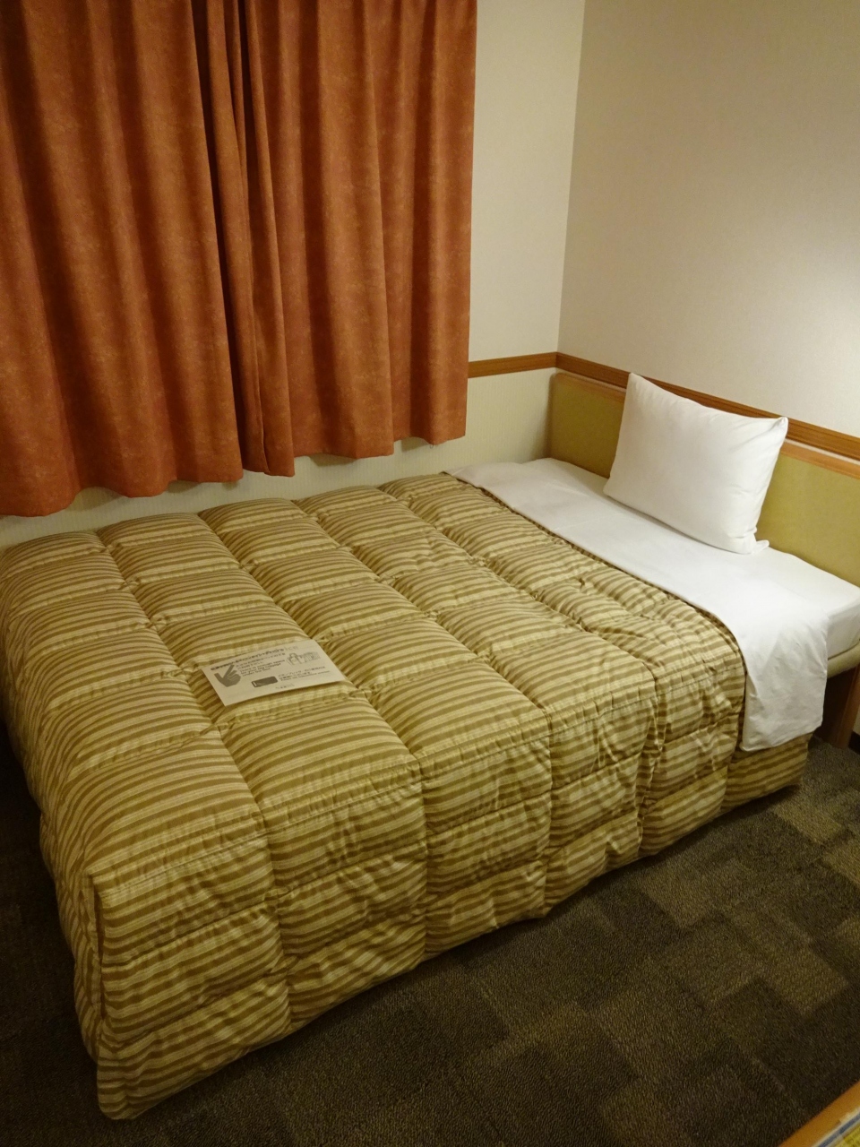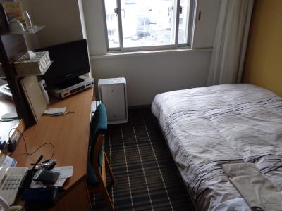 客室はシングルルームを利用しました。スーツケースを広げるスペースがあまり広くないのが欠点です。また、ベッド下の空間がないため、ベッドの下にスーツケースを収納できません。