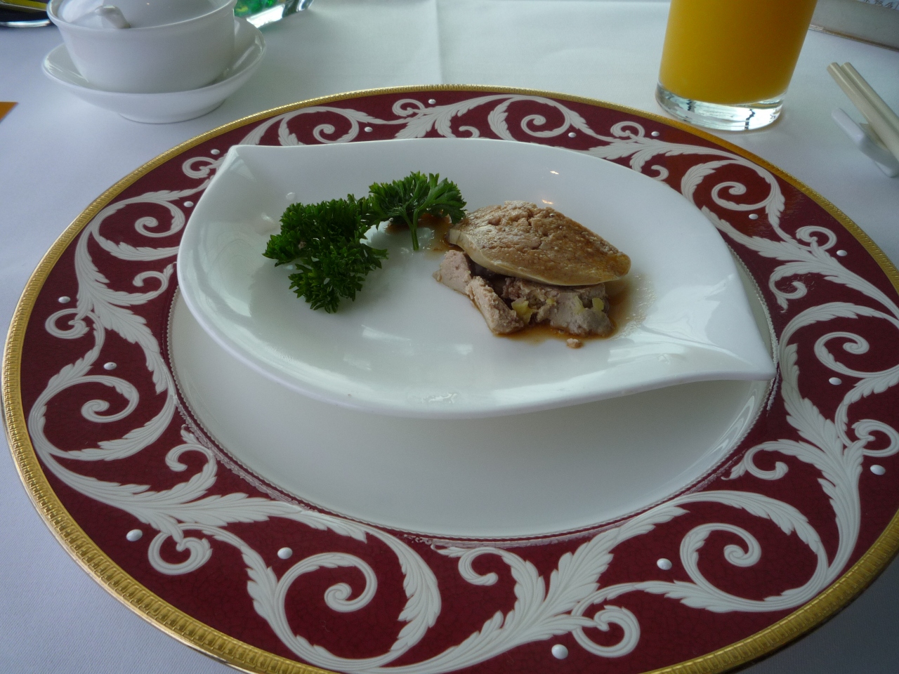 200香港ドルでアワビをはじめとした海鮮系の飲茶のランチとフォアグラの前菜、さらにナッツのクッキーがお土産で付いてきました。