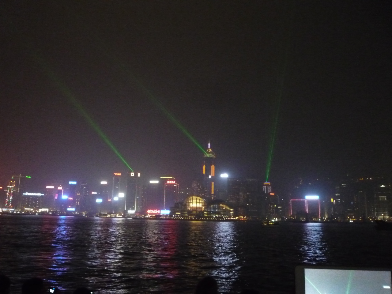 ショー自体は約10分ほどです。音楽に合わせて九龍側と香港島側にあるビルからレーザー光線や光が放たれます。観覧当日はガスがかかって香港島側から発する光が若干かすんでいました。